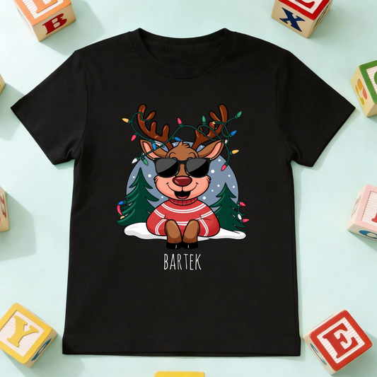 Świąteczna koszulka personalizowana dla rodziny | zabawny motyw z reniferem #911