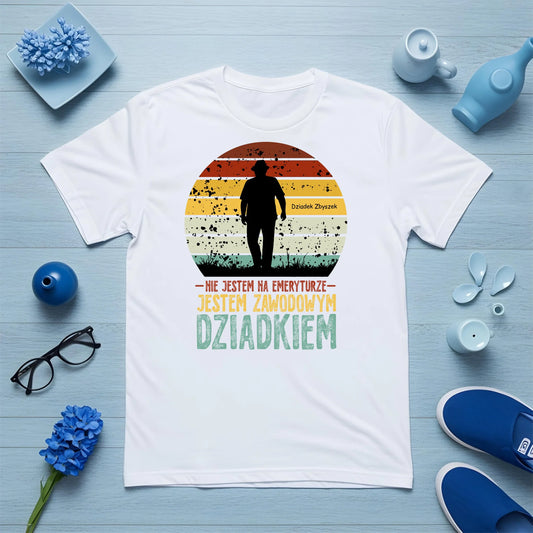 Koszulka personalizowana dla dziadka NIE JESTEM NA EMERYTURZE, JESTEM ZAWODOWYM DZIADKIEM | zabawny motyw retro #48100