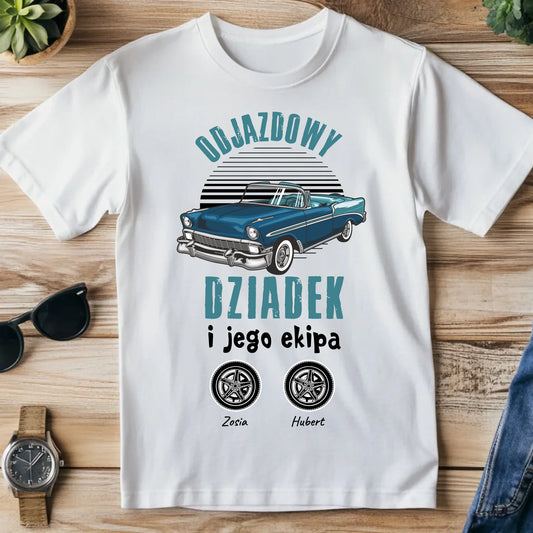 Koszulka personalizowana dla dziadka ODJAZDOWY DZIADEK I JEGO EKIPA | zabawny motyw z personalizacją imion #4555