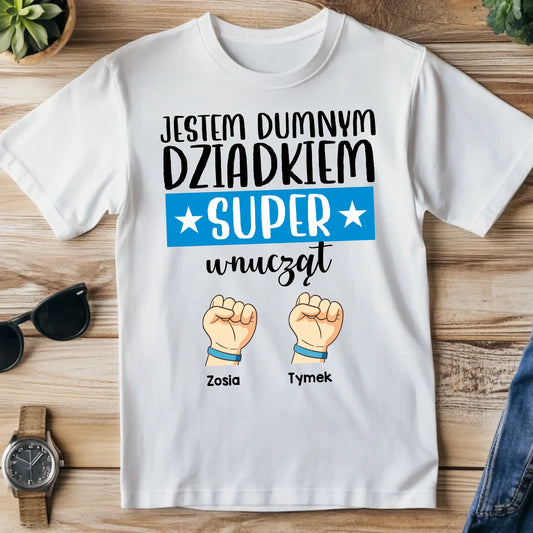 Koszulka personalizowana dla dziadka JESTEM DUMNYM DZIADKIEM SUPER WNUCZĄT | rodzinny motyw #458