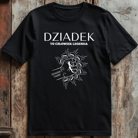 Koszulka męska personalizowana dla dziadka DZIADEK TO CZŁOWIEK LEGENDA | rodzinny motyw z personalizacją imion #2091