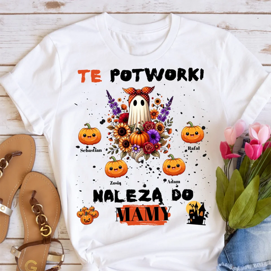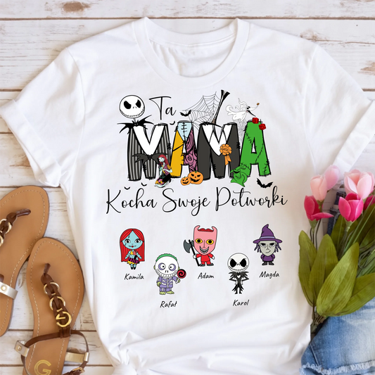 Koszulka rodzinna - 1-5 dzieci - mama kocha swoje potworki - Personalizowana - Prezent na Halloween #5535