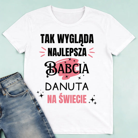 Koszulka personalizowana dla babci TAK WYGLĄDA NAJLEPSZA BABCIA | rodzinny motyw z personalizacją imienia #1895