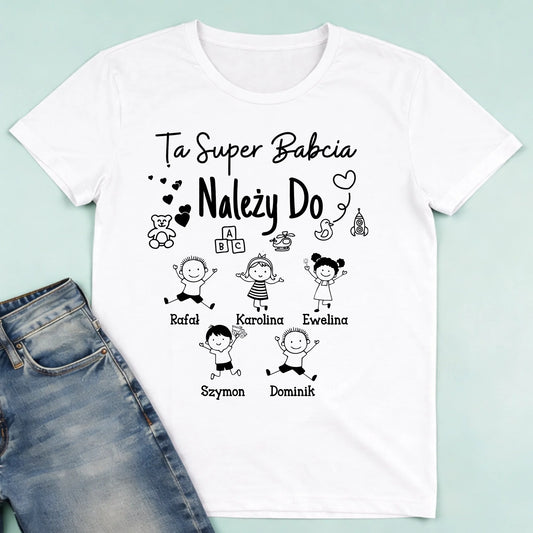 Koszulka personalizowana dla babci TA SUPER BABCI NALEŻY DO | rodzinny motyw z personalizacją imion #5101