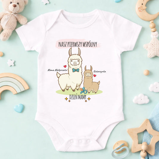 Koszulka personalizowana dla mamy i dziecka NASZ PIERWSZY WSPÓLNY DZIEŃ MAMY | rodzinny motyw z uroczymi lamami #42