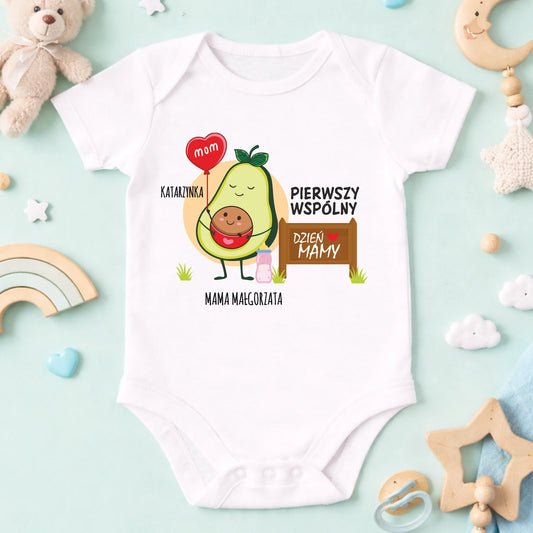 Koszulka personalizowana dla mamy i dziecka PIERWSZY WSPÓLNY DZIEŃ MAMY | zabawny motyw rodzinny #678