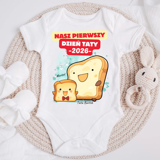 Koszulka personalizowana rodzinna NASZ PIERWSZY DZIEŃ TATY | motyw z tostami #7512