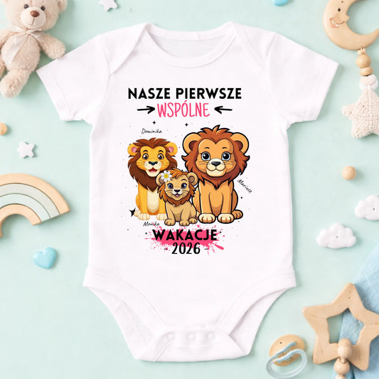 Koszulka personalizowana rodzinna NASZE PIERWSZE WSPÓLNE WAKACJE | motyw z rodziną lwów #5217