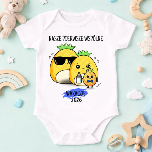 Koszulka personalizowana rodzinna NASZE PIERWSZE WSPÓLNE WAKACJE | motyw z ananasem #5215