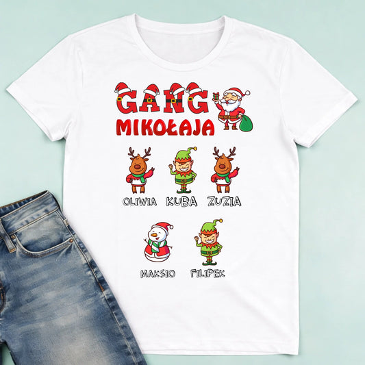 Świąteczna koszulka personalizowana dla rodziny GANG MIKOŁAJA | z personalizacją imion #602