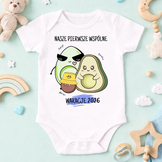 Koszulka personalizowana NASZE PIERWSZE WSPÓLNE WAKACJE | motyw z rodziną awokado #5211