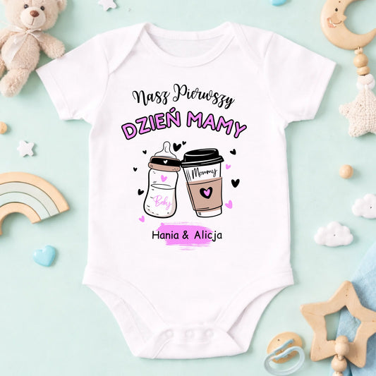 Koszulka personalizowana NASZ PIERWSZY DZIEŃ MAMY | zabawny motyw rodzinny #6951