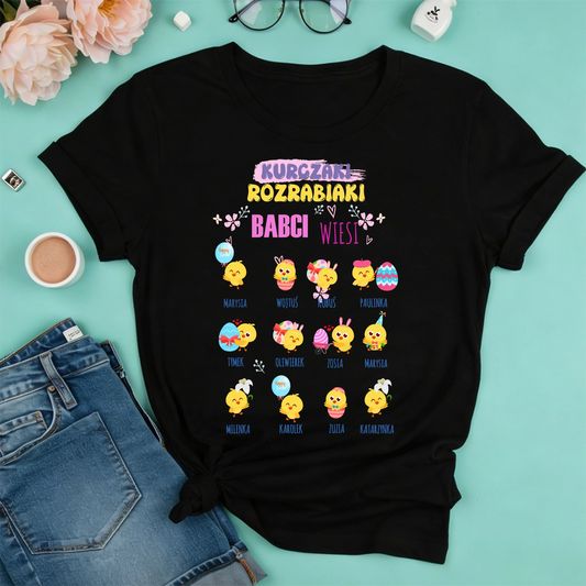 Wielkanocna koszulka personalizowana dla babci KURCZAKI ROZRABIAKI | rodzinny motyw z pisklętami #8412