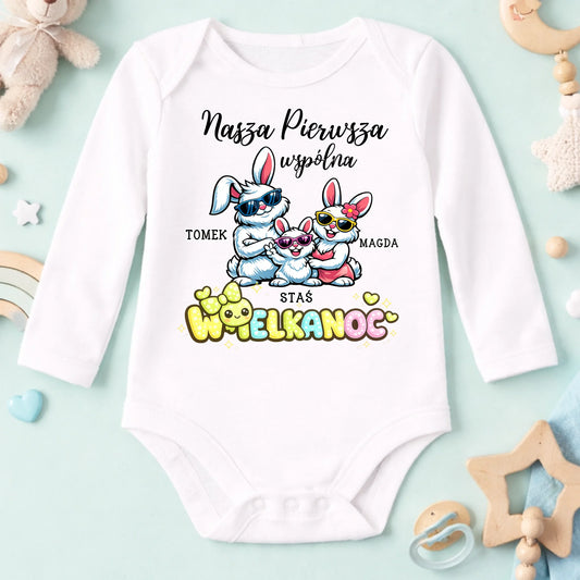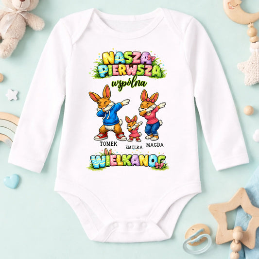 Wielkanocna koszulka personalizowana dla rodziny NASZA PIERWSZA WSPÓLNA WIELKANOC | motyw z króliczkami #0073