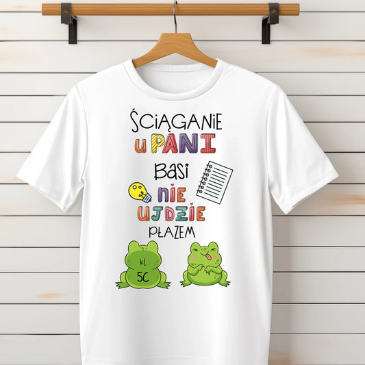Koszulka personalizowana dla nauczycielki ŚCIĄGANIE U PANI NIE UJDZIE PŁAZEM | zabawny motyw z żabami #401