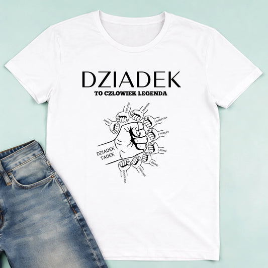 Koszulka męska personalizowana dla dziadka DZIADEK TO CZŁOWIEK LEGENDA | rodzinny motyw z personalizacją imion #2091