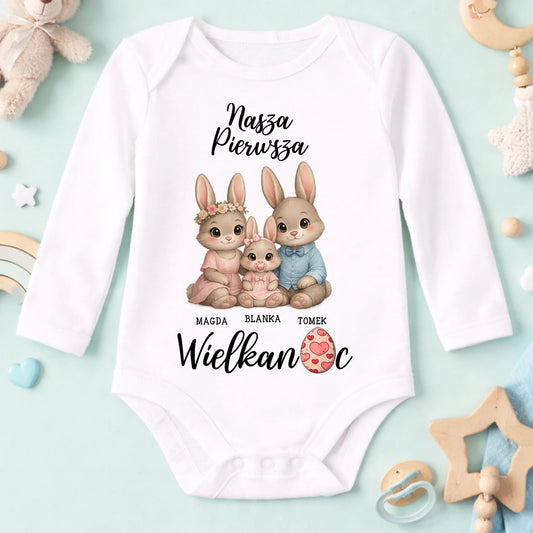 Wielkanocna koszulka personalizowana dla całej rodziny NASZA PIERWSZA WIELKANOC | motyw z rodziną królików #0074
