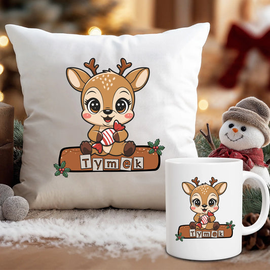 ZESTAW - Poduszka + Kubek Świąteczny - z imieniem - Prezent na Święta #09112