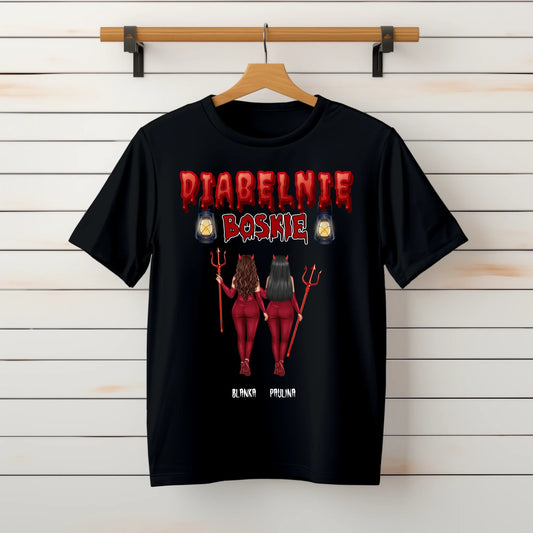 Halloweenowa koszulka personalizowana dla przyjaciółek DIABELNIE BOSKIE | motyw z diablicami #312