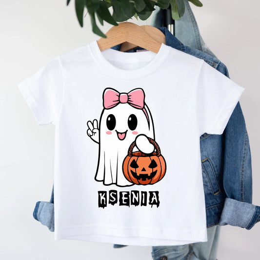 Halloweenowa koszulka personalizowana dla dziecka | motyw z duchem i personalizacją imienia #305