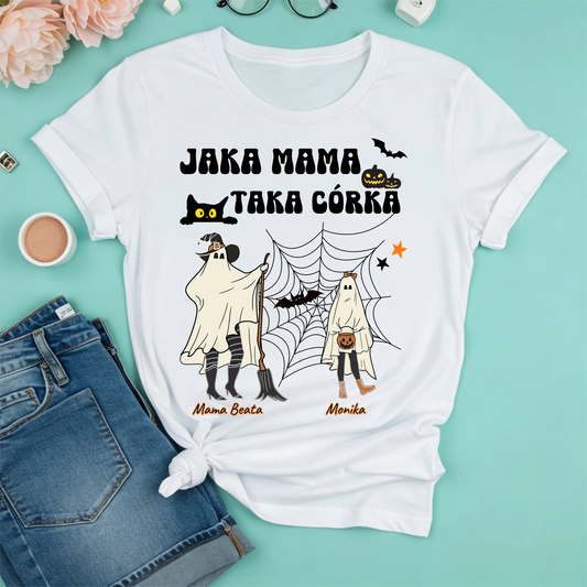 Koszulka personalizowana dla mamy i córki JAKA MAMA TAKA CÓRKA | halloweenowy motyw z duchami #941