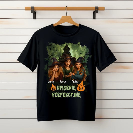 Halloweenowa koszulka personalizowana dla przyjaciółek UPIORNIE PERFEKCYJNE | motyw z wiedźmami #310