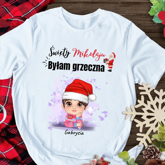 Świąteczna koszulka personalizowana ŚWIĘTY MIKOŁAJU BYŁAM GRZECZNA | zabawny motyw bożonarodzeniowy #2