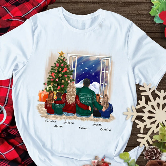 Świąteczna koszulka personalizowana dla rodziny | motyw z wypatrywaniem pierwszej gwiazdki #224