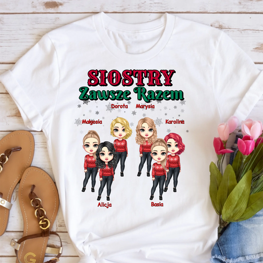 Świąteczna koszulka personalizowana dla sióstr SIOSTRY ZAWSZE RAZEM | rodzinny motyw #9561