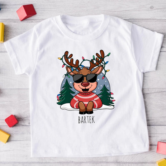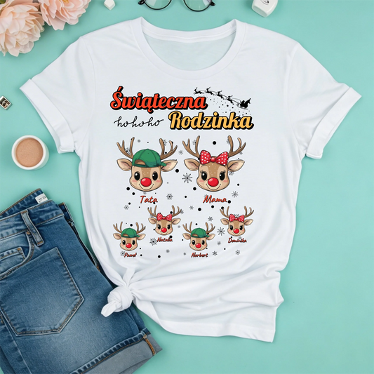 Świąteczna koszulka personalizowana dla rodziny | zabawny motyw z reniferem #911