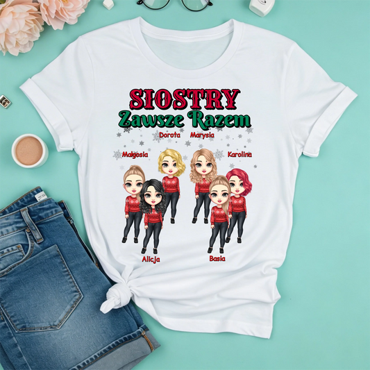 Świąteczna koszulka personalizowana dla sióstr SIOSTRY ZAWSZE RAZEM | rodzinny motyw #9561