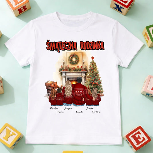 Świąteczna koszulka personalizowana dla rodziny ŚWIĄTECZNA RODZINKA | motyw z kominkiem #5901