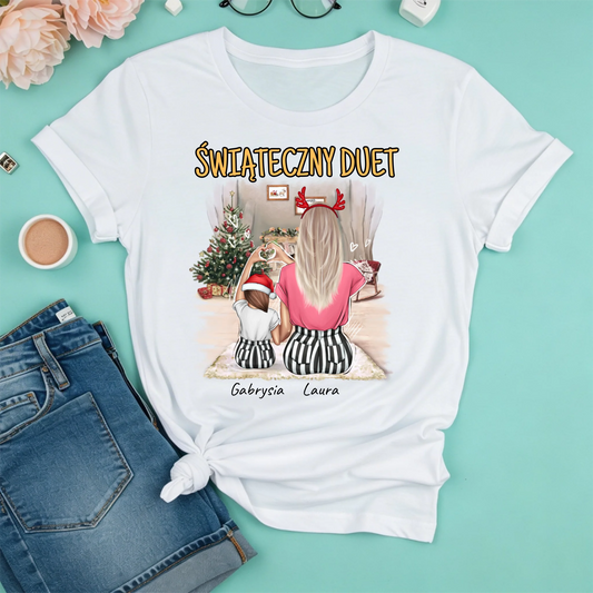 Koszulka personalizowana dla mamy i dziecka ŚWIĄTECZNY DUET | świąteczny motyw z sercem #5002