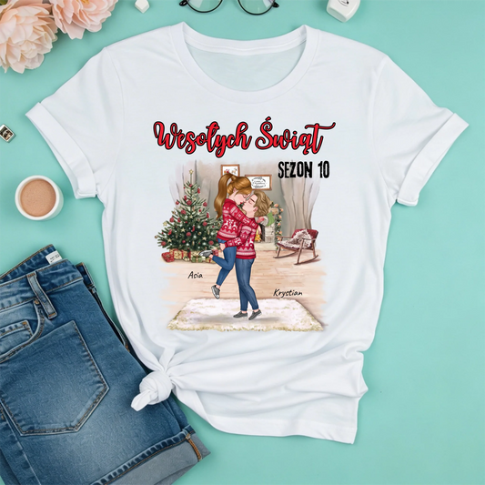 Świąteczna koszulka personalizowana dla par WESOŁYCH ŚWIĄT | motyw z choinką #5741