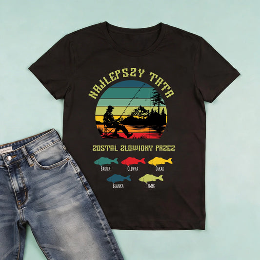 Koszulka personalizowana dla taty NAJLEPSZY TATA ZOSTAŁ JUŻ ZŁOWIONY | rodzinny motyw dla wędkarza #4233