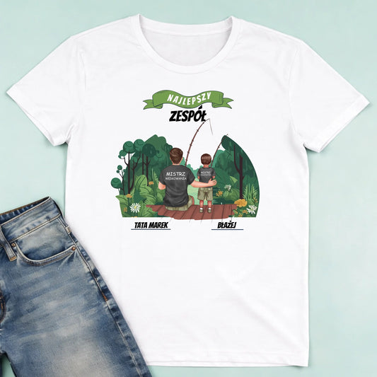 Koszulka personalizowana dla taty i syna NAJLEPSZY ZESPÓŁ | rodzinny motyw dla wędkarzy #233