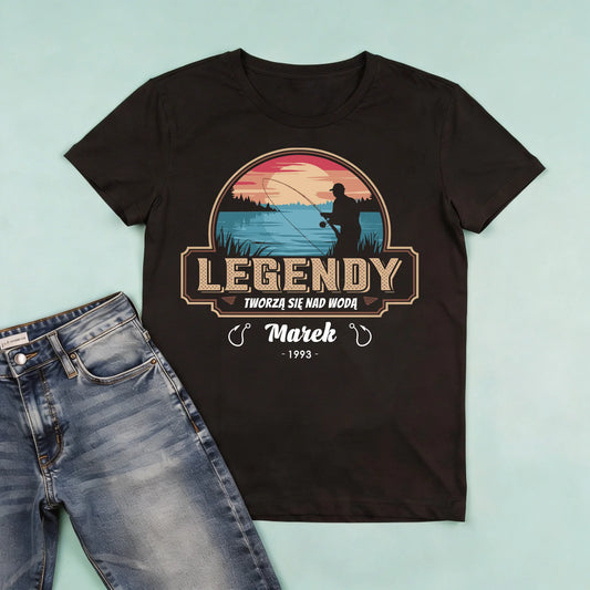 Koszulka męska personalizowana LEGENDY TWORZĄ SIĘ NAD WODĄ | motyw dla wędkarza #17