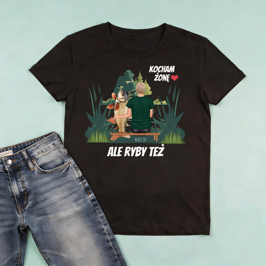 Koszulka męska personalizowana dla rybaka KOCHAM ŻONĘ ALE RYBY TEŻ | motyw dla wędkarza #111