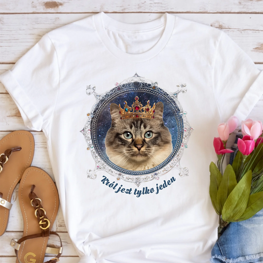 Koszulka personalizowana dla właściciela kota KRÓL JEST TYLKO JEDEN | motyw z kotem w koronie #511