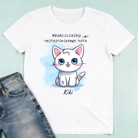 Koszulka personalizowana WŁAŚCICIELKA NAJFAJNIEJSZEGO KOTA | zabawny motyw z uroczym kotkiem #4999