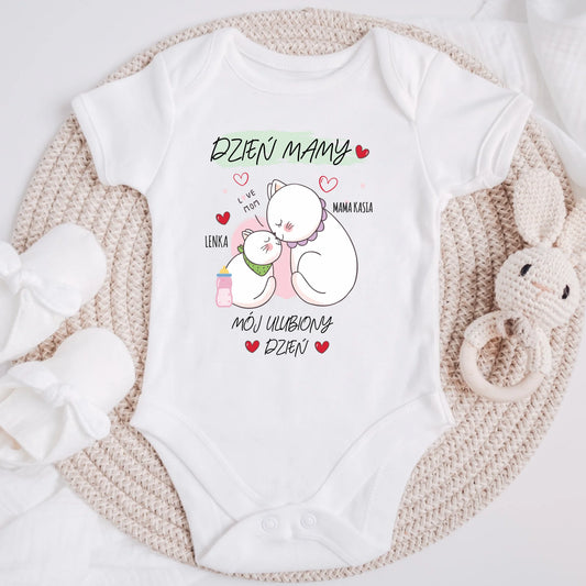 Koszulka personalizowana dla mamy i dziecka DZIEŃ MAMY MÓJ ULUBIONY DZIEŃ | rodzinny motyw z kotkami #266