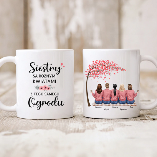 Kubek dla sióstr/przyjaciółek z kwiatami i imieniem - Personalizowany #501