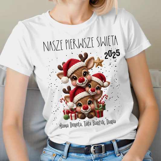 Koszulka świąteczna dla rodziny z reniferem - nasze pierwsze święta 2025 #9241