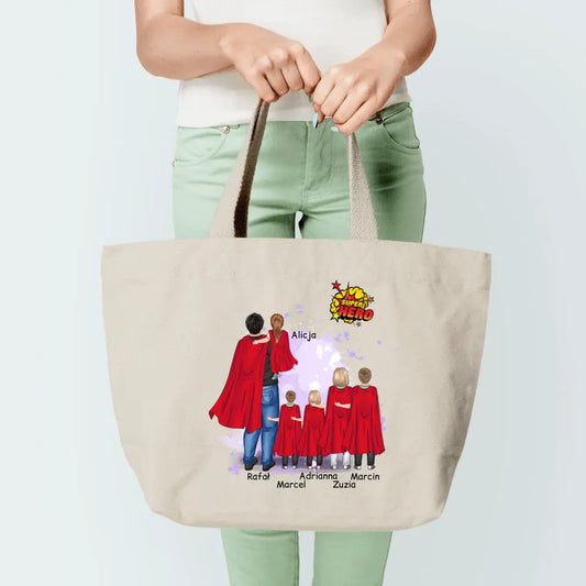 Torba materiałowa ze wzorem tata + 1-5 dzieci (rodzinna) #4311