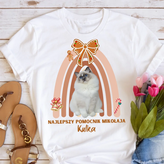 Koszulka ze zdjęciem kota pomocnik - Personalizowana - Prezent na mikołaja i święta #1812