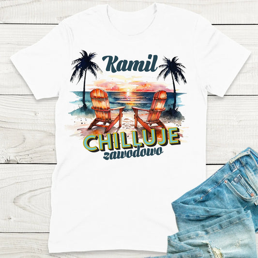 Koszulka personalizowana CHILLUJE ZAWODOWO | zabawny motyw plażowy #12