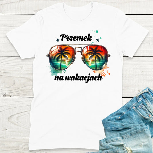Koszulka personalizowana NA WAKACJACH | wakacyjny motyw z okularami #36781