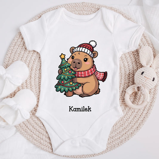 Koszulka świąteczna dla dziecka z imieniem i Kapibarą - Prezent na święta #9482