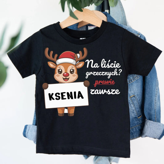 Świąteczna koszulka personalizowana NA LIŚCIE GRZECZNYCH? PRAWIE ZAWSZE | zabawny motyw z reniferem #127