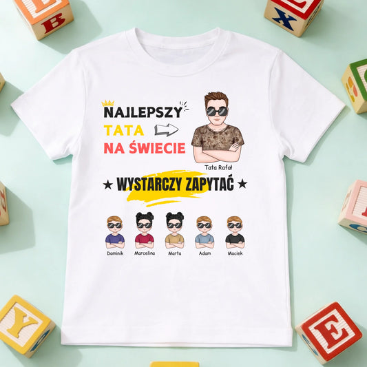 Koszulka personalizowana NAJLEPSZY TATA NA ŚWIECIE WYSTARCZY ZAPYTAĆ | z personalizacją imion #4425
